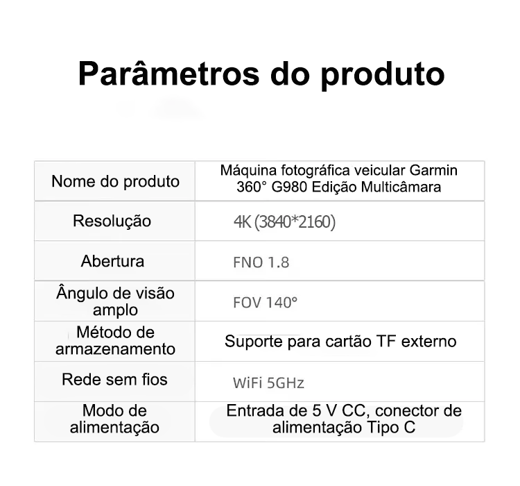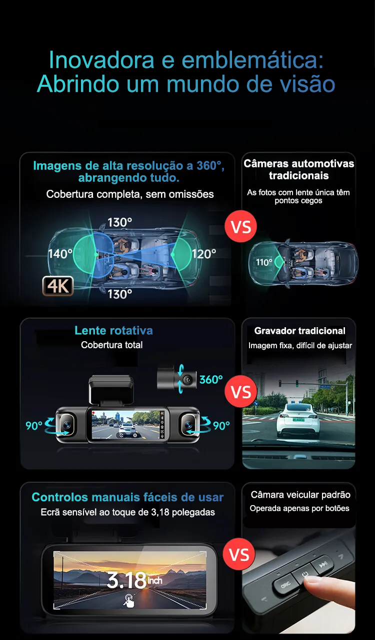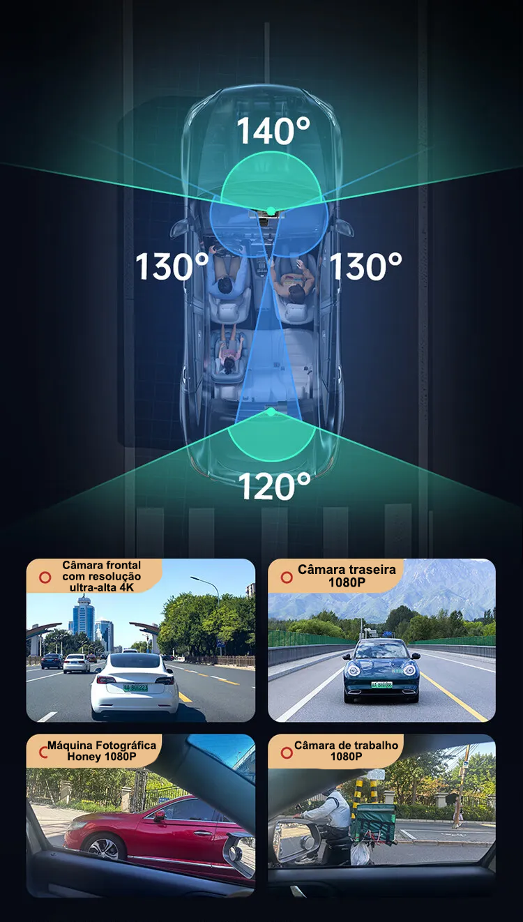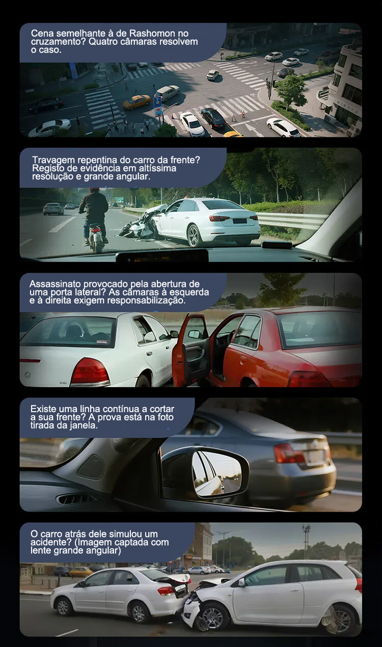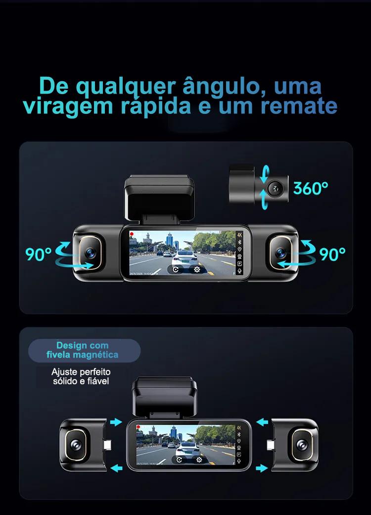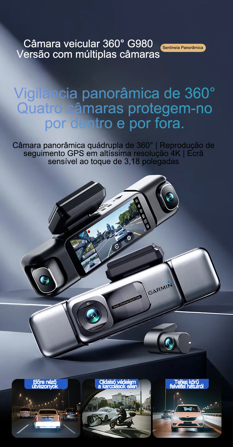 Câmara automóvel G980 com inteligência artificial e controlo por voz, equipada com quatro câmaras, ecrã panorâmico de 360°, visão noturna 4K Ultra HD e rastreamento por GPS